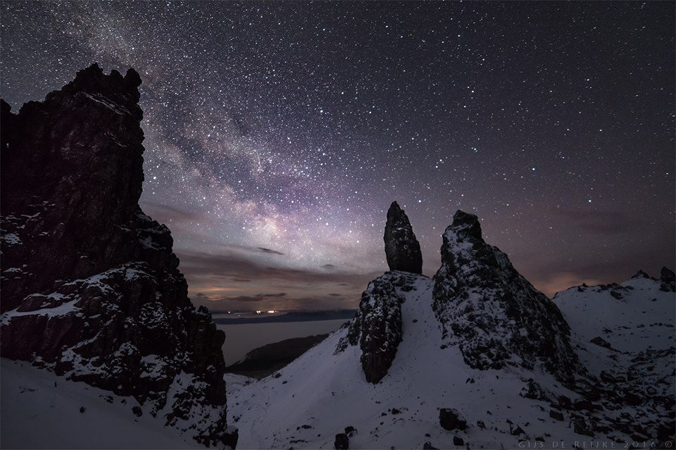 A mystical island where cliffs, moors, and ancient landscapes glow under the northern Milky Way.