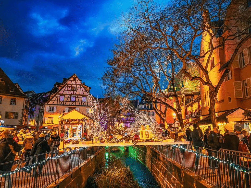Colmar is one of France’s most picturesque towns year-round — but at Christmas, it becomes something extraordinary. The half-timbered houses, pastel colors, and canal reflections look even more magical under glowing garlands and lanterns.