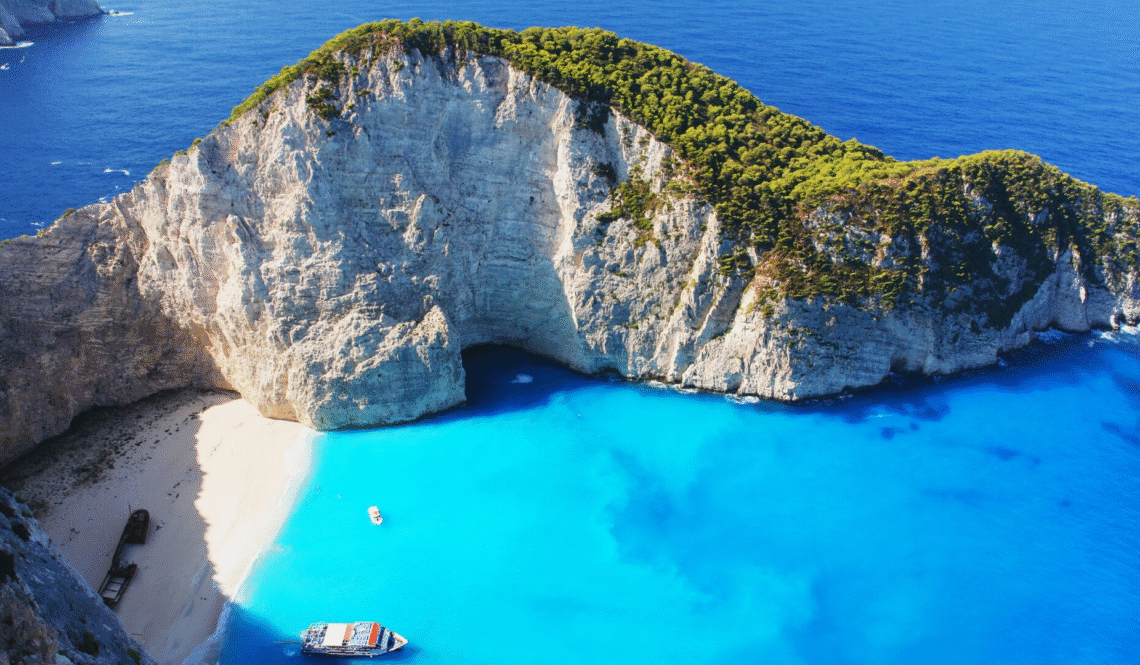 Fly into Zakynthos International Airport (ZTH). From towns like Porto Vromi, Agios Nikolaos, or Zakynthos Town, hop on a boat tour that brings you directly into the cove—no land access exists due to the cliffs.